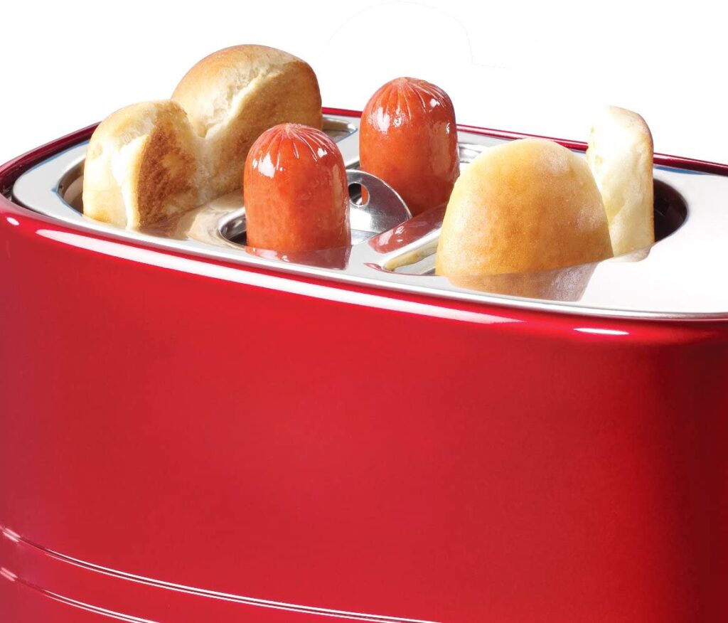 이 과정을 토스터로 퉁칠 수 있게 해주는 물건이 있다. 핫도그 전용 토스터. 그러니까, 우리가 토스터로 식빵을 굽듯 핫도그 빵과 소세지(그렇다! 소세지도 구워준다!)를 넣고 조금만 기다리면 노릇노릇 구워진 채로 튀어나온다는 얘기다. 머스터드와 케첩 뿌리기, 양파 슬라이스와 렐리시 얹기 등의 과정은 남았지만 그래도 토스터로 간단하게 구워준다고 하니 반갑기만 하다.