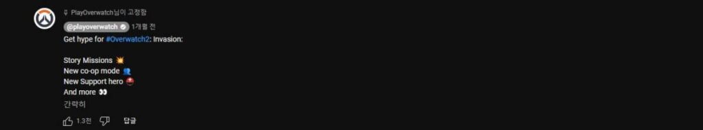 오버워치 정식 유튜브 채널을 보면 협동미션과 새로운 서포트 영웅 등이 있을 것이라고 예고한 바가 있습니다. ‘침공’ 업데이트를 소개하면서 달았던 댓글이기 때문에 앞으로 협동미션이 부각될 것으로 보이는데요. 이전에 소개하였던 스킬 트리라던가 커스터 마이징 같은 기대되는 요소들은 다소 사라진 상태이지만 여전히 성공적인 게임의 타이틀로서 한 번 더 도약할 것으로 보입니다.