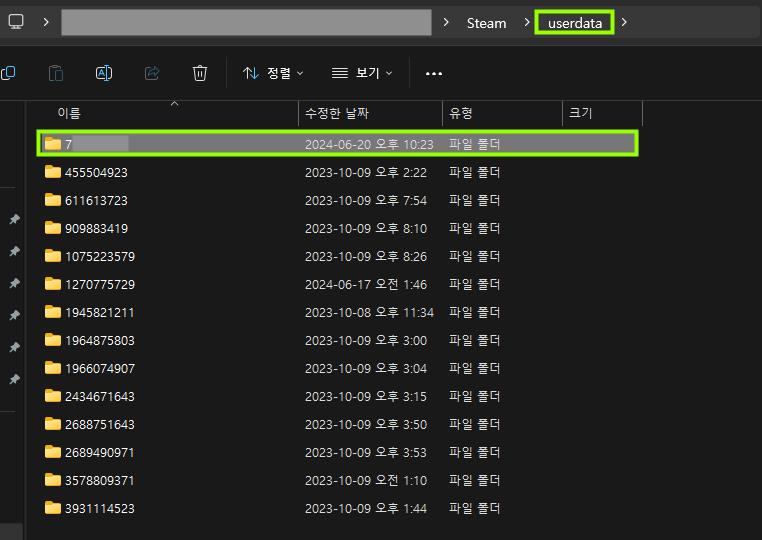 이제 세이브파일을 수정하기만 하면 되는데요. ‘스팀’이 설치되어 있는 폴더로 들어간 뒤, userdata – user-id(친구코드)로 이동해주도록 합니다. 경로를 다시 정리해서 설명을 드리면 아래처럼 정리가 가능할 것 같습니다.