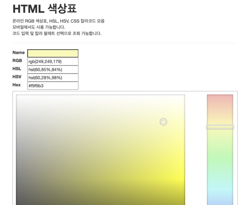 우선 피크민 블룸 닉네임 이름 색깔을 바꾸기 위해서는 우선 변경하고자 하는 색상의 색상 코드가 필요한데요. 아래 제가 링크 걸어둔 HTML 색상표에 들어가 원하는 색상을 선택하고 Hex 코드를 복사해주세요.