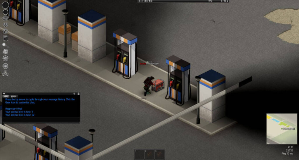 오늘 준비한 것은 프로젝트 좀보이드 내에서 주유소에서 기름 넣는 법입니다. 이제 막 걸음마를 떼신 분들은 이것만은 꼭! 숙지하시면 좋을 것 같습니다. 늘 강조하는 부분입니다만, 게임이 개발 단계에 있기도 하고 워낙 불친절할 정도로 리얼리티가 가미된 게임이라 디테일한 부분을 잘 살펴보아야 합니다. 기름 넣는 부분도 마찬가지입니다. ‘주유소 앞에 차 대고서 그냥 넣으면 되겠지~’ 라고 생각하신다면 굉장히 실수하는 것입니다. 그럼 지금부터 기름 빵빵하게 주유하는 법 알아볼까요?