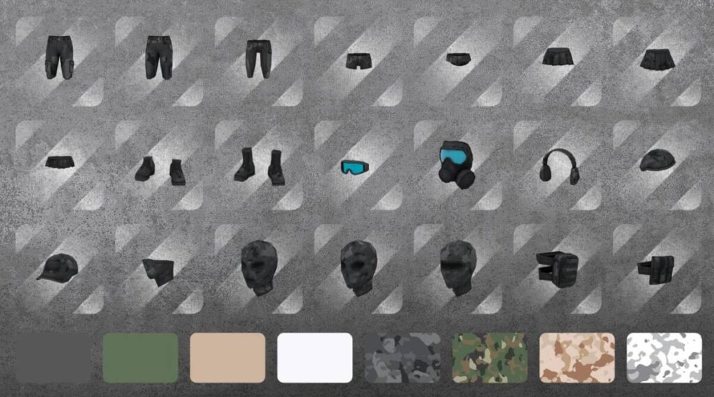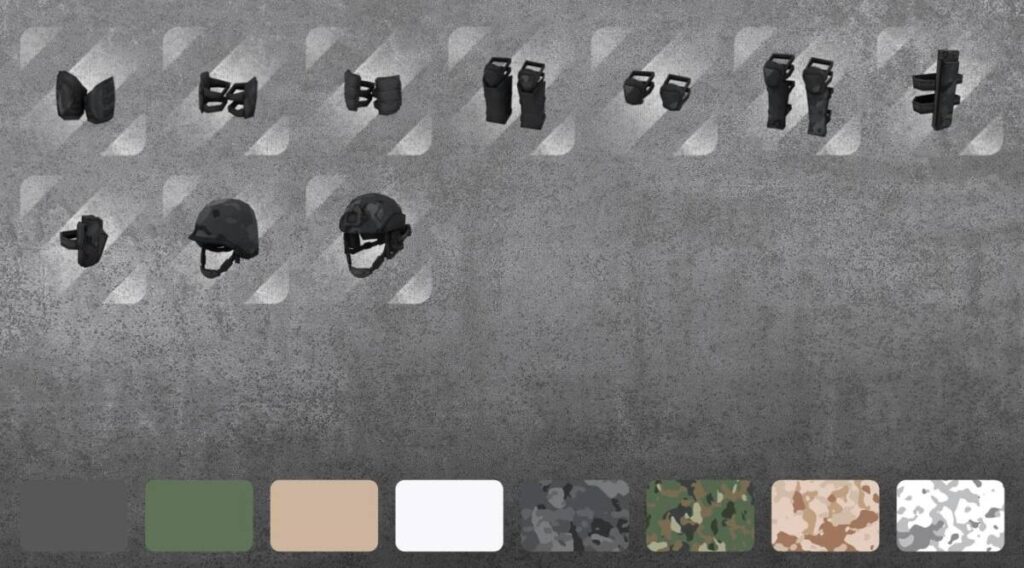 이것들도 마찬가지로 다양한 컬러를 사용할 수 있는데요. 중요한 점은 위장 패턴이 단순히 색깔만 입혀졌다는 것이 아닙니다. 색에 따라서 능력치가 다른데요. 한 가지 예시로, 겨울용으로 사용되는 흰색 위장 패턴은 추위에 대한 면역이 더욱 우수합니다.
