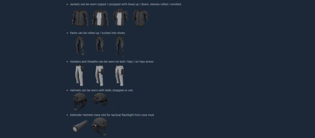 방어구의 색깔은 다른 유저들에 의해서 더욱 확대될 수 있을 것으로 보입니다. 혹은, 모더의 동의를 구해서 본인이 직접 변경할 수도 있을텐데요. 브리타 모드에서 제공하는 퀄리티 못지 않은 군용 방어구를 선보이고 있으니 군용품에 대한 애정이 있으신 분들이라면 꼭 적용하시기 바랍니다.