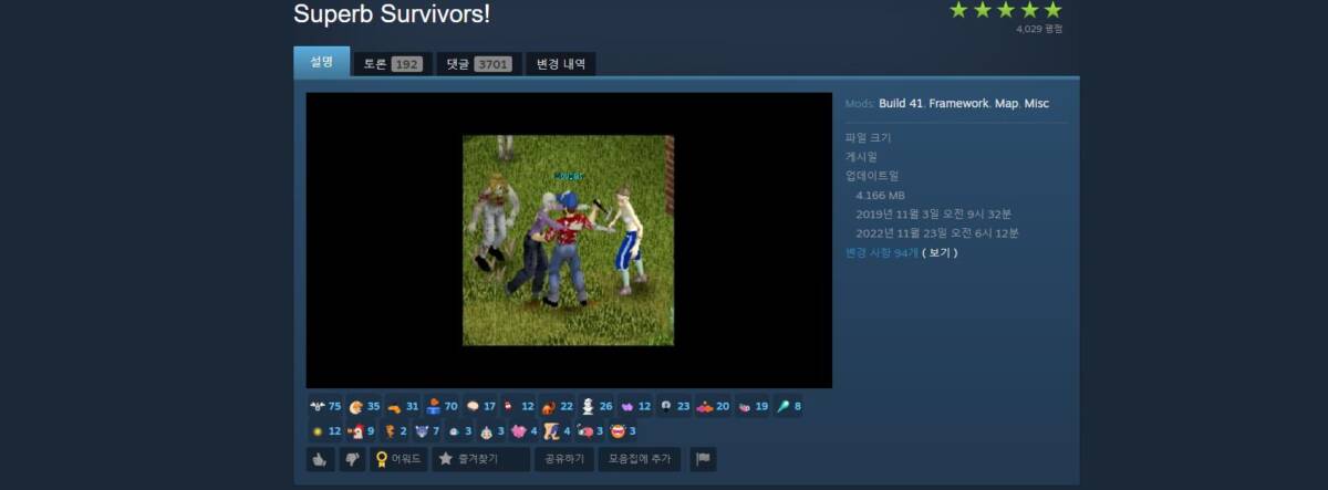 프로젝트 좀보이드는 게임의 재미를 위하여 여러 가지 모드를 동시에 적용시키곤 하는데, 그 때문에 각종 오류도 발생하곤 합니다. 그렇기에 오류를 최소화 시키면서도 재미를 확보해야 하므로 NPC 모드 역시 오류가 적은 것으로 선택하는 것이 좋습니다. 그리고 그에 걸맞는 모드가 바로 Superb Survivors라고 생각합니다. 물론, 앞서 언급한 것과 마찬가지로 순정 모드만 설치하였을 경우에만 오류가 최소화된다는 점은 참고하시기 바랍니다.