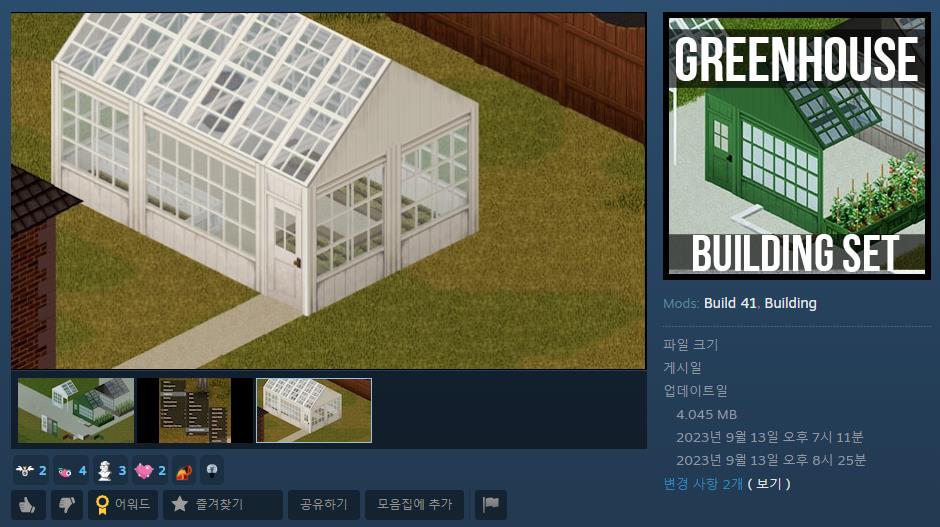 최근에 몇몇 대형 유튜버 분들이 플레이 해서 그런 것인지는 모르겠지만 여전히 많은 분들이 프로젝트 좀보이드를 플레이 해주고 계신데요. 그에 따라서 오늘은 게임에 쓰이는 몇 가지 유용한 모드를 소개하려고 합니다. 본론으로 바로 들어가서, 첫 번째로 소개하려는 프로젝트 좀보이드 모드 추천은 ‘그린하우스 빌딩 세트’ 라는 것입니다.