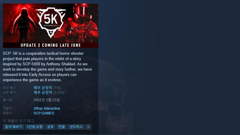 👮🏻‍♀️ 스팀 SCP 5K 페이지 바로가기
