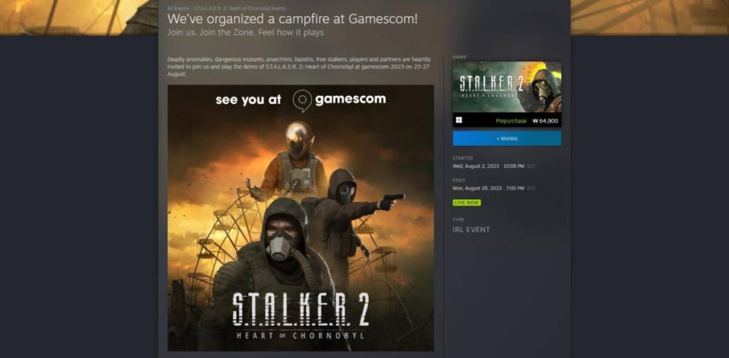 스토커 2 : 체르노빌의 심장, 2023 게임스컴에 참가! 2