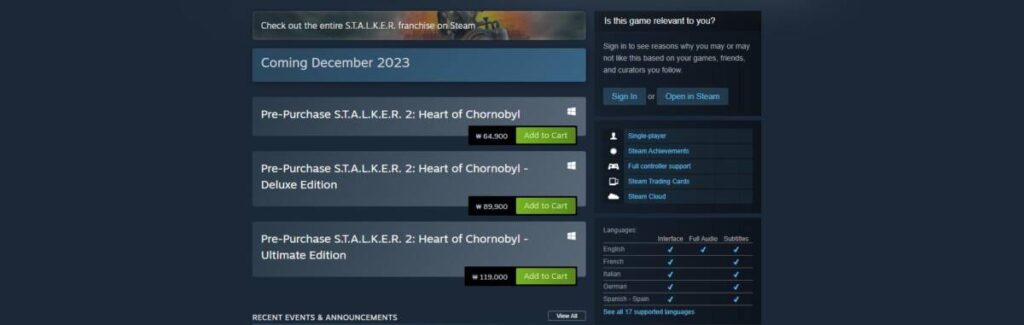 기대되는 게임이긴 하지만 스토커 2의 가격은 조금 센 편이긴 합니다. 게다가 요새 나오는 AAA급 게임들이 6만원대에 상주하고 있는 것을 생각해보면 ‘이 게임’이 이 정도까지 가격이 나갈 일인가 싶은 면도 없지 않아 있는 게 사실입니다.