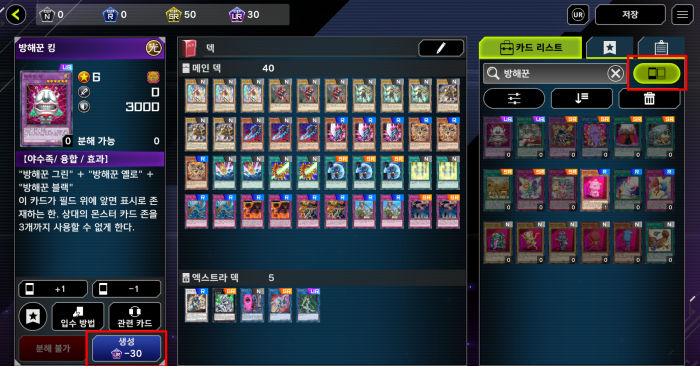 마스터듀얼에서는 필요없는 UR카드를 3장 분해하면 자신이 원하는 UR카드를 1장 생성할 수 있다. (SR등도 가능)