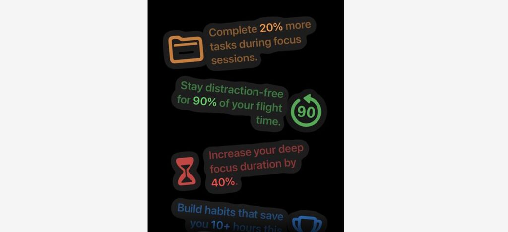 하지만 이 앱을 통해서 비행기 모드를 사용한다면? 일이든 공부든 정말 잘 될 수 밖에 없습니다. 비행기에 타고 있을 때 나오는 소음, 도착지까지의 시간 등 다양한 비행 관련 내용과 함께 집중할 일만 눈 앞에 보이니까요.