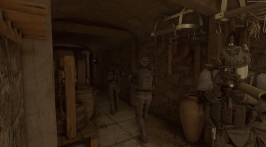 레디 오어 낫은 리얼리티, 하드코어를 추구하는 게임인 만큼 전술적인 부분도 매우 중시되는 편인데요. 하여 개발진들은 위 사진, 일렬 종대 하고 있는 장면을 통해 이 대형이 갖는 이점에 대해서 설명하고 있었습니다. 터널과 같은 매우 좁은 지형에서 아주 유용하다고 하는데요. 아무래도 일자로 전진하는 대형인 만큼 전면에서 나타나는 위협에 노출되는 대원의 수가 적다는 이점이 있지만 그만큼 전면부에 대한 대응력이 떨어진다는 점을 설명하였습니다.