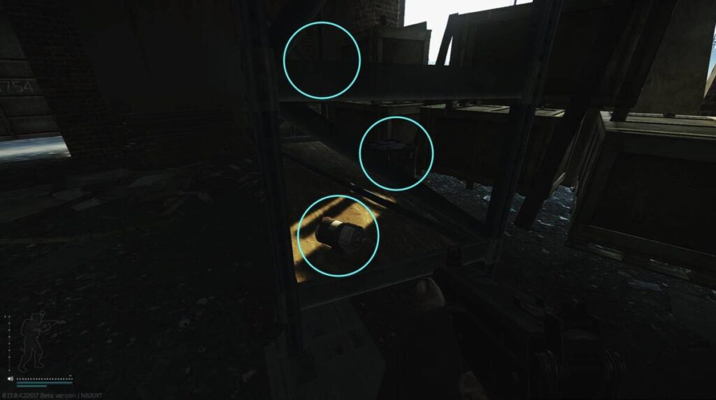 더군다나 왼쪽에 선반에서는 총기 파츠들이 스폰되기도 하여 일석이조로 누릴 수 있는 장소로 손꼽히기도 하죠. 추가적으로, 사진에서 오른쪽에 있는 초록색 대야가 있는 곳에서는 가끔씩 연료통이 떨어져 있기도 합니다.