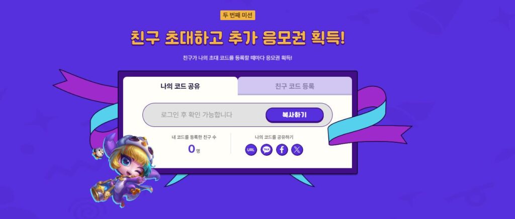 지인들을 초대함으로써 응모권을 받는 방법도 있는데요. 하지만 이 방법은 플레이 하는 것에 비해서 응모권을 받을 수 있는 것이 한정적이다 보니 추천드리지는 않습니다. 가장 좋은 것은 원래 하던 시간대에 집중해서 많은 횟수를 플레이 하는 것이니 이 점 참고하시기 바랍니다!
