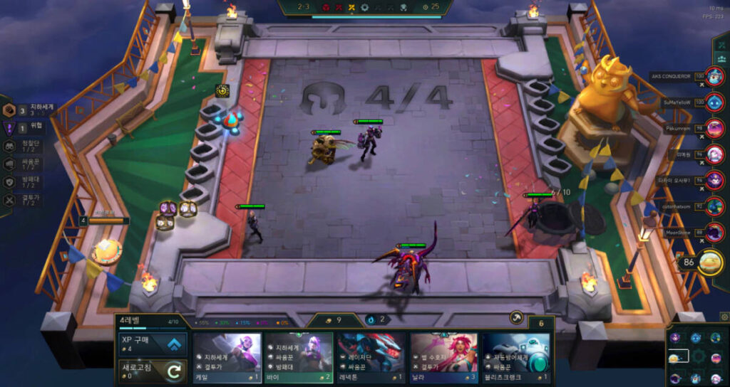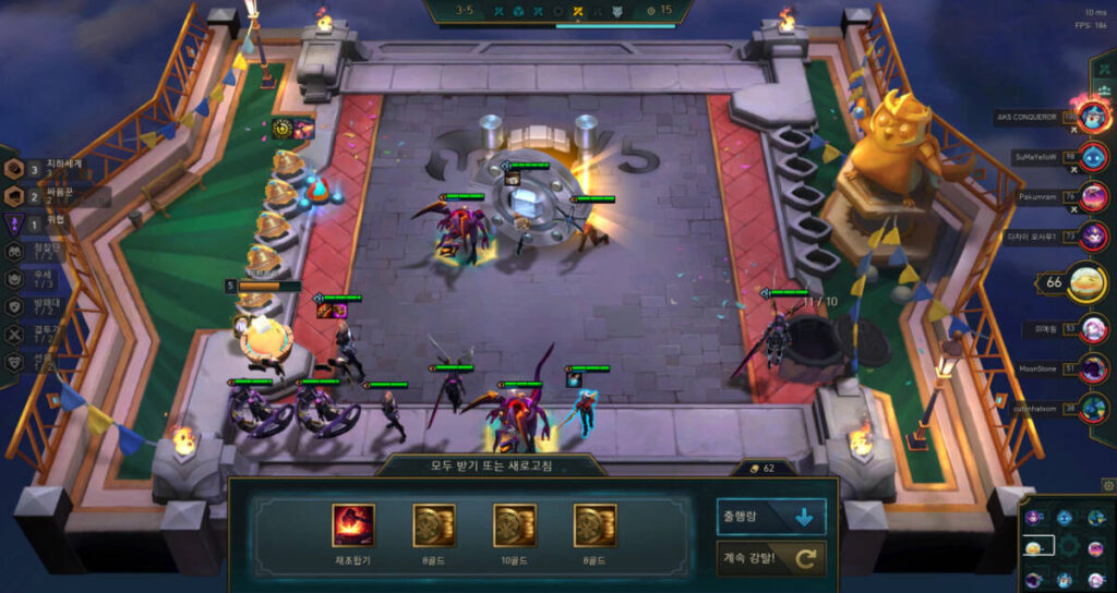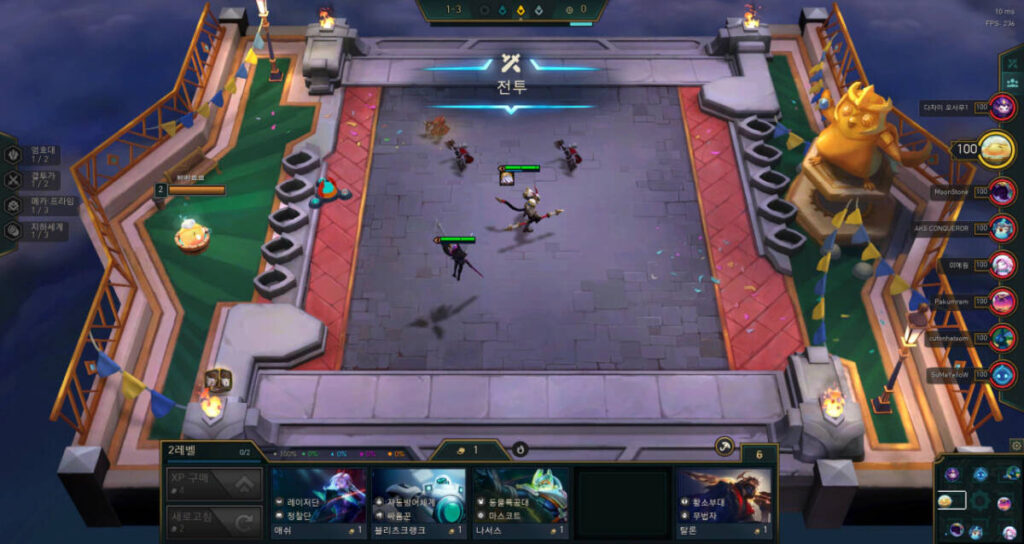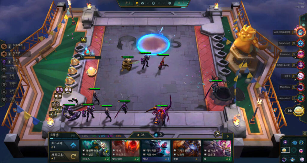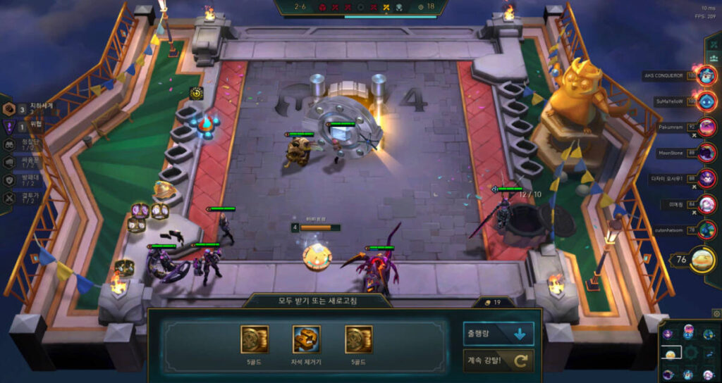 또한, 챔피언들은 반드시 초반에 꾸렸던 그 덱 그대로 구성하시는 것을 추천합니다. 혹시 20원을 썼는데도 같은 덱의 챔피언이 잘 안 나온다면, 빠르게 잘 나오는 챔피언들로 구성해주시기 바랍니다. 다른 유저들도 해당 덱의 챔피언을 많이 보유하고 있어서 나오지 않는 것일 수 있습니다.