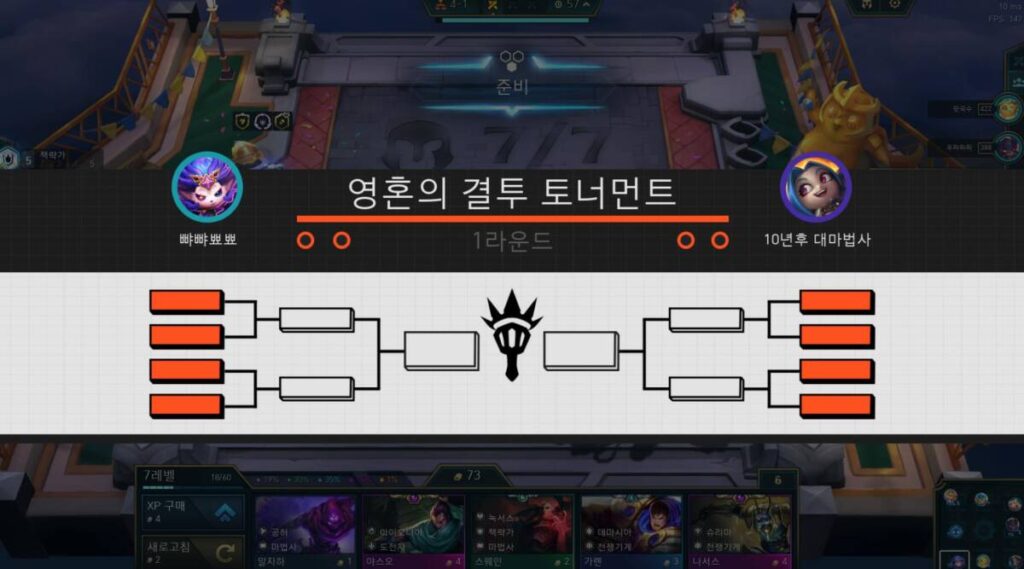 롤토체스는 원래 체력이 모두 고갈되면 끝나는 방식이죠. 또한 게임의 흐름을 제대로 파악하고 있지 못하면 막판에 가서 판을 뒤집기도 굉장히 어렵습니다. 하지만 영혼의 결투는 다릅니다. 모든 유저가 서로 다른 체력을 갖고서 훈련을 끝내면, 4-1 부터 유저간 토너먼트가 시작되며 2승을 할 경우 다음 대진표로 이동됩니다. 반대로 2패를 할 경우 곧바로 게임에서 아웃되는데요.