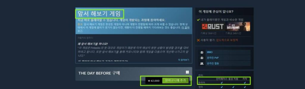 신작 게임 더 데이 비포 스팀 화면