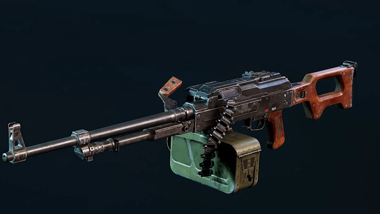 PKM은 대용량 탄창을 자랑하는 기관총으로, 중거리 엄호 및 지속적인 화력 지원에 적합한 무기입니다. 높은 안정성과 화력 덕분에 팀원 지원 역할을 할 때 유용합니다. 숙련도 높은 유저가 다루면 더욱 강력한 화력을 발휘할 수 있으며, 엄호 및 팀 지원을 담당하기 좋은 총기입니다.