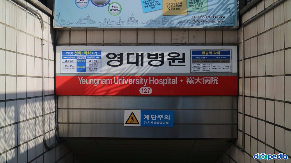 대구광역시 남구에 위치한 대구 도시철도의 1호선에 위치한 역으로 1997년 11월 26일 개업을 했으며 역 번호는 127번입니다. 승강장은 2면 2선 상대식으로 되어있고, 출입구는 3곳에 설치되어 있습니다. 역명은 인근에 지역 최대 병원 중의 하나인 영남대학교 의과대학 부속병원인 영남대병원에서 유래되었습니다.영대병원역 근방에 영남대학교 대구캠퍼스, 영남대학교병원, 명덕시장, 영대병원 네거리 등 다양한 시설이 자리잡고 있어 하루 평균 이용객이 많은 편입니다.