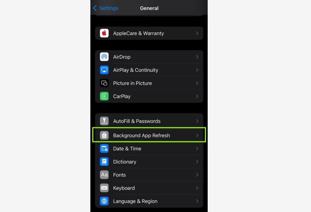 아이폰, 안드로이드 할 것 없이 아까 살펴보았던 경로와 비슷하게 백그라운드에 대한 내용을 살펴볼 수 있는데요. 이름에서 유추할 수 있듯이 앱을 사용하지 않는 상황에서도 주기적인 새로고침을 하여 빠른 사용 및 로딩 등을 가능하게 해주는 기능입니다.